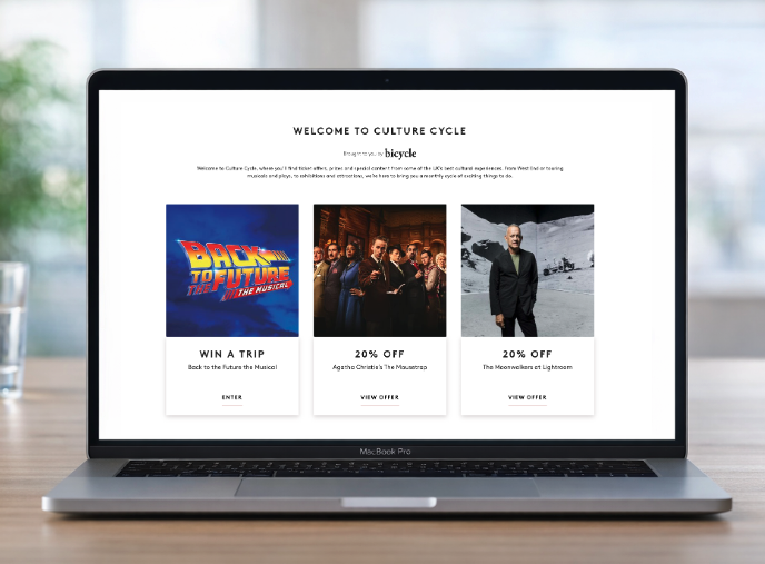 Culture Cycle is Bicycle Partnership’s our own arts & culture marketing platform. The site hosts a cyclical selection of monthly offers and competition prizes, along with promotional content.